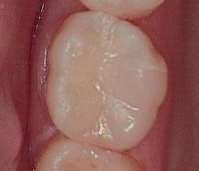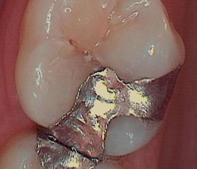 This dental patient arrived at Ellettsville Dental Center with a silver filling that had a large cavity near it. To compete the dental treatment a very conservative porcelain Onlay was able to be bonded to the tooth. This dental restoration replaces just the broken portions of the tooth while leaving the healthy part intact.