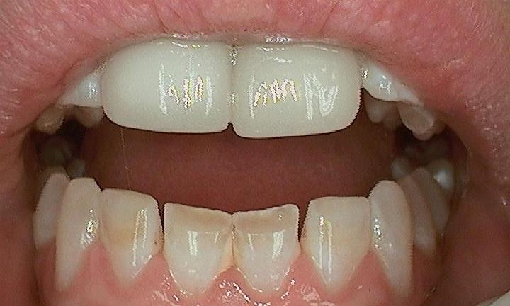 This dental patient arrived at our dental office in Bloomington, Indiana with severely worn lower teeth and poorly designed upper dental crowns. The dental crowns in Bloomington were replaced and conservative veneers covered the lower teeth. Do you think dental crowns or veneers would benefit your smile? Call Ellettsville Dental Center today to schedule your next dental visit with us.