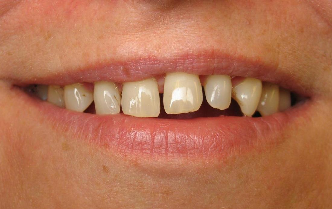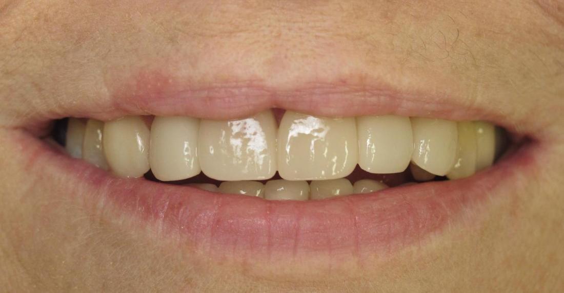 Our dental patient has never liked her smile. After a few months with traditional braces our expert dental team was able to place these beautiful veneers in Bloomington, IN. The veneers are thin porcelain that are bonded to the surface of the tooth. At Ellettsville Dental Center, very little preparation of the tooth is needed and we can control the shape and color of the porcelain veneers to fit the patient's ideal smile.
